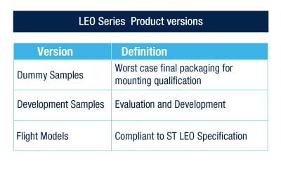The resulting manufacturing LEO flow is largely based on AEC-Q100 / AEC-Q101 specifications but also includes specific design and manufacturing variations for space applications. In addition to resultant effects tests for Total Ionization Dose (TID), Total Non-Ionization Dose (TNID) and Single-Event Effect (SEE), ST's LEO space components benefit from a Certificate of Conformance, aimed at approving flight-ready components, without any additional cost, lead time or risk for aerospace manufacturers and service providers.