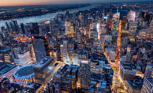 Aerial view of a city skyline at dusk with illuminated skyscrapers and streets Aerial view of a city skyline at dusk with illuminated skyscrapers and streets Aerial view of a city skyline at dusk with illuminated skyscrapers and streets