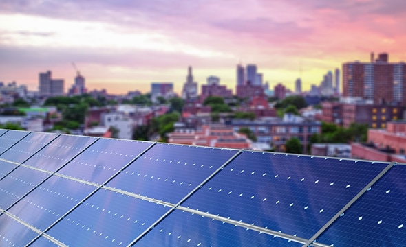 Solar panels in foreground with city skyline at sunset demonstrating sustainable energy integration Solar panels in foreground with city skyline at sunset demonstrating sustainable energy integration Solar panels in foreground with city skyline at sunset demonstrating sustainable energy integration