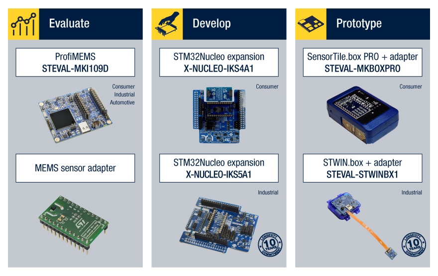 The best way to get started with machine learning core in sensors is to select the appropriate solution with supporting ST tools and software for your application.