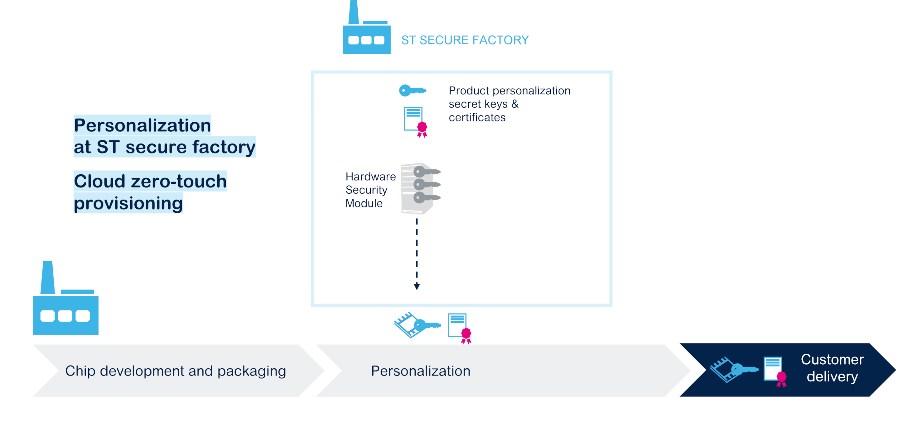 - Configure and load certificates and keys at ST certified secure manufacturing sites before delivery
