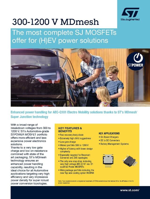 ST offers high-voltage MDmesh M6 & M9 STPOWER MOSFETs in a new compact, thermally efficient package: the TO-LL surface-mounted package offers high electrical and thermal efficiency, compactness and space saving in power conversion applications like SMPS, data centers and solar microinverters. Thanks to the additional Kelvin-source lead, designers can achieve better efficiency due to reduced turn-on/turn-off switching losses.