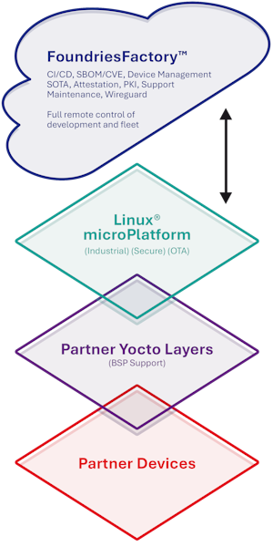 FoundriesFactory is compatible with a wide range of hardware, supporting faster time to market, lower engineering overhead, and continuous security updates — all without vendor lock-in.