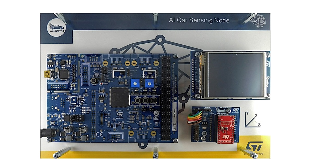 このバンドルには、AEK-CON-SENSOR1コネクタ・ボードとAIS2DW12 3軸加速度センサが含まれています。マザーボードそのものに4MBのFlashメモリ搭載のSPC58EC Chorusマイクロコントローラが収納されており、学習済みのニューラル・ネットワークも装備されています。簡単に言えば、AEKD-AICAR1センサ・ノード・キットには、開発者が機械学習アプリケーションを開始する上で必要なすべてのものが備わっているのです。