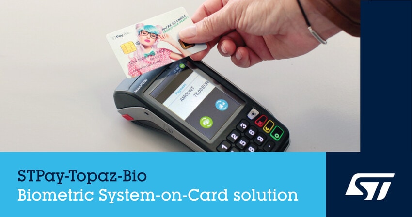 STPay-Topaz-Bio facilitates the creation of biometric system-on-cards. It handles the fingerprint enrollment, data template, power management, and the card’s authentication process. Users simply put a finger on the card’s fingerprint sensor instead of entering a PIN before the transaction takes place.