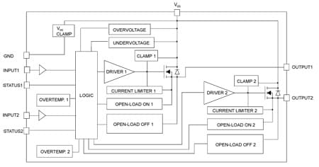 The device detects the open-load condition in both the on-state and off-state. In the off-state the device detects if the output is shorted to VCC. The device automatically turns off in the case where the ground pin becomes disconnected.