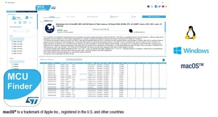 ST-MCU-FINDER-PC features easy-to-use selection tools, self-maintaining documentation, and connections to MCU communities.