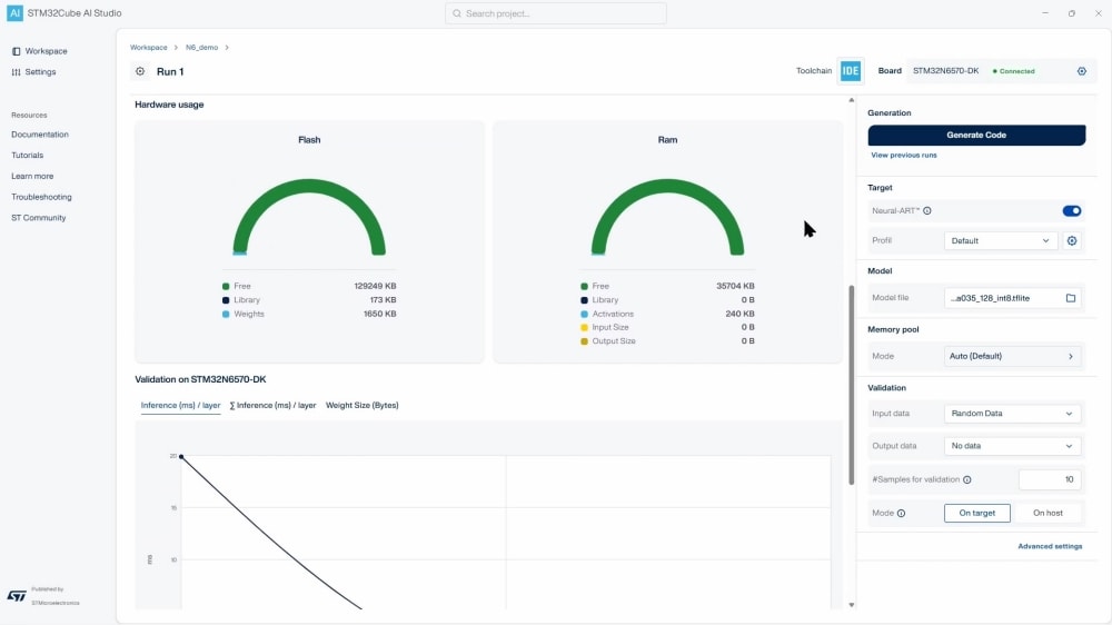 - Support for STMicroelectronics Neural-ART Accelerator neural processing unit (NPU) for AI/ML model acceleration in hardware
