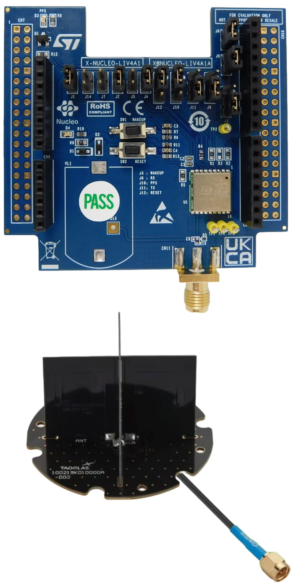 The X-NUCLEO-LIV4A1 expansion board is based on the Teseo-LIV4F tiny dual-band GNSS Low power and measurement engine modules.