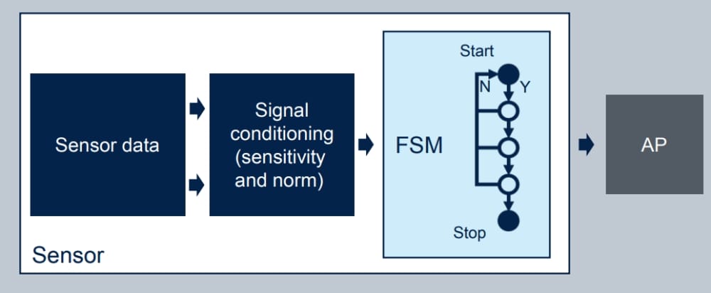 The FSM is available in many ST MEMS sensors and can be configured to generate interrupt signals activated by user-defined motion patterns.