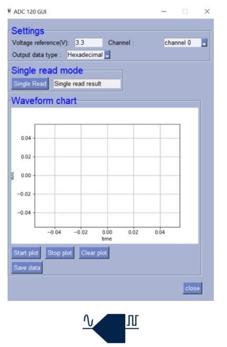 The STSW-AKI software allows to read each channel of the ADC120 or ADC1283.