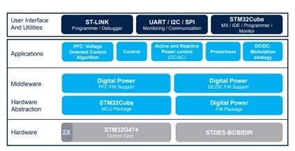 The STSW-BCBIDIR provides a solution to control the double-stage STDES-BCBIDIR power converter exploiting a mixed-signal digital MCU optimized for digital power applications.