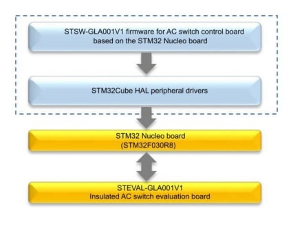 The STSW-GLA001V1 firmware is designed to be used with the STEVAL-GLA001V1 insulated AC switch control evaluation board to evaluate its embedded TRIACs and AC switches, implementing different control modes.