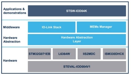The middleware libraries include an ST proprietary IO-Link demo-stack.