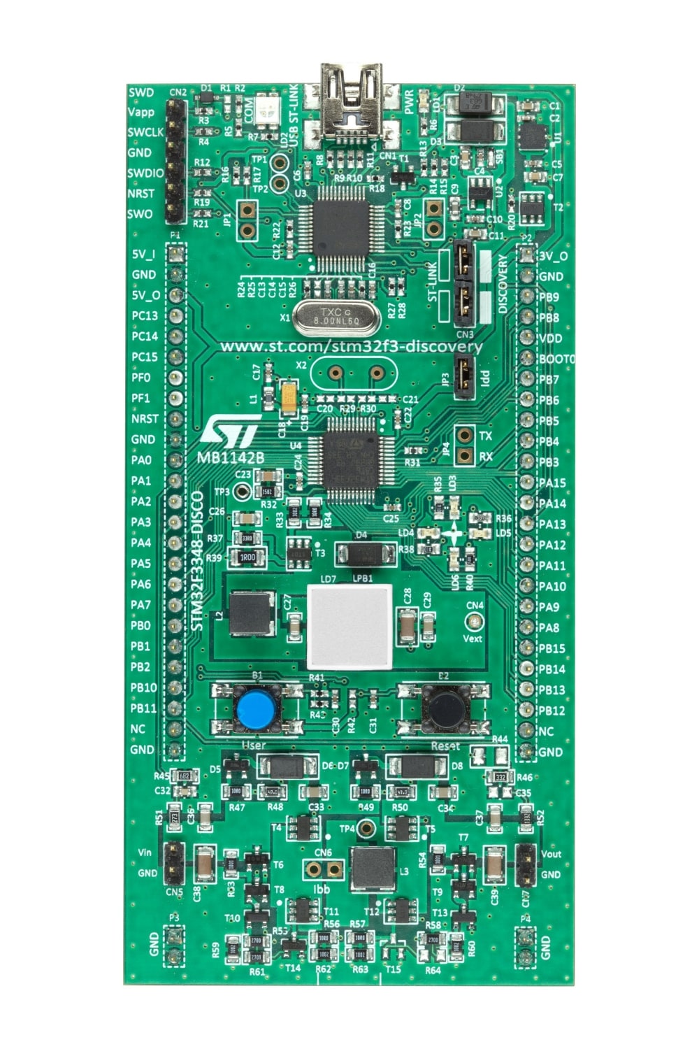 The 32F3348DISCOVERY Discovery kit for the STM32F334 line is based on an STM32F334C8T6 microcontroller. It highlights the digital power features of the STM32F334 line microcontrollers. The Discovery kit for the STM32F334 line makes it possible to develop applications easily, and it offers everything required for both beginners and experienced users to get started quickly.