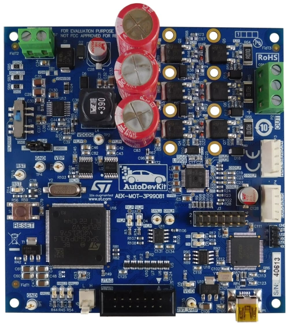 The AEK-MOT-3P99081 supports independent encoder inputs and Hall sensors to detect and control motor speed.