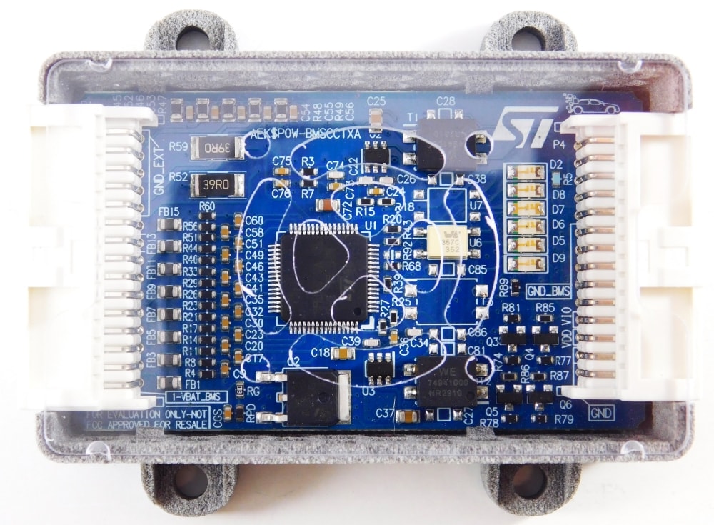 - Hosts the L9963E AEC-Q100 qualified automotive multicell battery monitoring and balancing IC