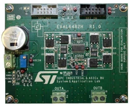 The EVAL6482H supports the daisy chain configuration making it suitable for the evaluation of the L6482 in multi motor applications.