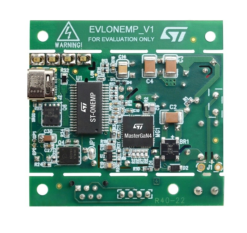 This board is based on ST-ONEMP, the world’s first digital controller embedding Arm® Cortex® M0+ core, an offline programmable controller with synchronous rectification, and USB PD PHY in a single package.