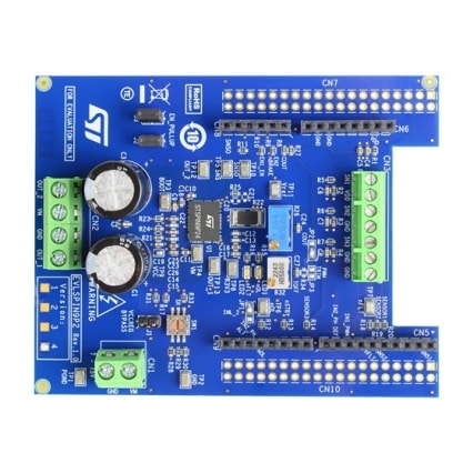 The board can be stacked with an X-Nucleo MCU control board through Arduino® connectors or driven directly by external pins.
