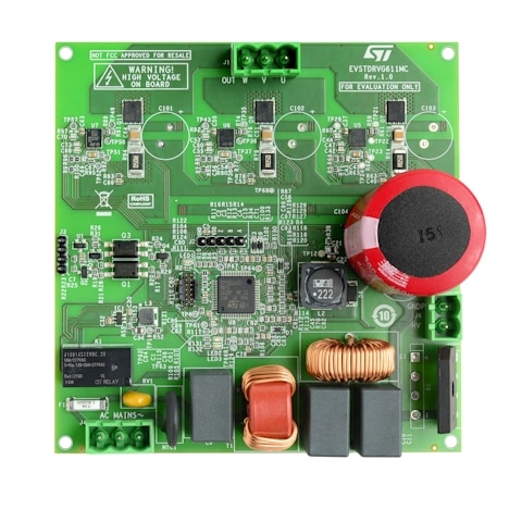 The EVSTDRVG611MC is a three-phase inverter based on the STDRIVEG611 half-bridge GaN gate driver, 75 mΩ 650 V e-mode GaN HEMT, and the high-performance STM32G431RBT3 with Arm Cortex®-M4 MCU at 170 MHz.