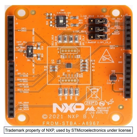 The FRDM-STBA-A8967 is a sensor add-on/companion shield board for FXLS8967AF 3-axis low-power motion wake accelerometer.