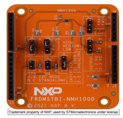 The FRDMSTBI-NMH1000 sensor shield boards can be kitted with FRDM-KE15Z to enable quick customer evaluation of NMH1000 magnetic switch sensor.