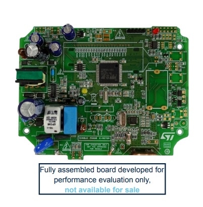 The STDES-EMETER1PV1 single-phase smart meter is a fully assembled board developed for performance evaluation only, not available for sale.