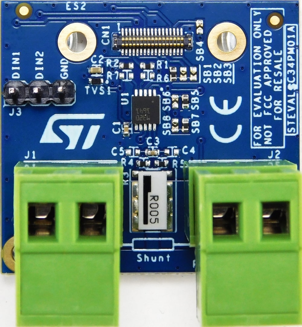 The STEVAL-C34KPM1 evaluation kit allows the user to evaluate the performance of the TSC1641, 16-bit, high precision current and power monitor with an MIPI I3C/I2C interface.