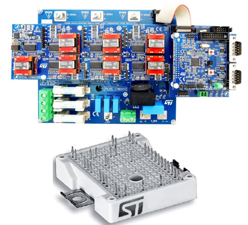 The hardware platform is a stackable solution consisting of: a power stage (STEVAL-CTM002V2), which contains the power module and current sensing circuitry, a driving stage (STEVAL-CTM001V2D) which contains the new galvanically isolated STGAP1AS gapDRIVE, with suitable circuitry to drive the embedded IGBTs in the power module, a control board (STEVAL-CTM001V1C), based on the STM32F303RBT7 microcontroller, which is able to execute the field oriented control (FOC) algorithm to obtain the best performance in all motor control applications.