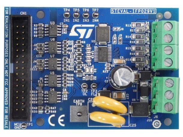 The STEVAL-IFP029V1 evaluation board is designed to let you analyze the functions of the fast quad low side intelligent power switch IPS4260L.