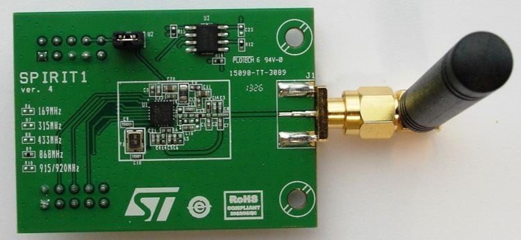 - SPIRIT1 low power sub GHz transceiver in a standalone RF module tuned for 868 MHz