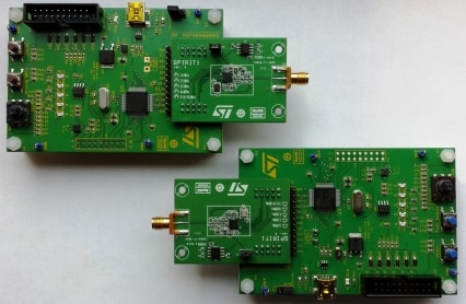 The STEVAL-IKR002V5 development kit includes 2 RF daughterboards based on the SPIRIT1 low power, sub-GHz low data rate transceiver suitable for ISM bands and wireless M-BUS, and 2 motherboards based on the STM32L low power microcontroller to control the daughterboards.