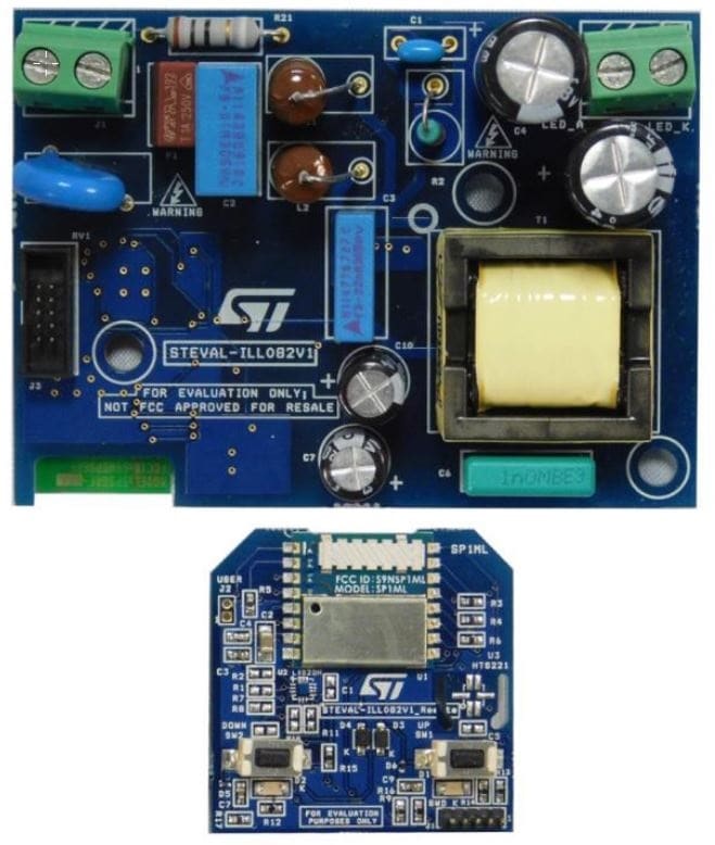 The LED driver evaluation board can operate in standalone mode in communication with the bundled STEVAL-ILL082V1_Remote controller based on SP1ML to help to reduce development and certification time.