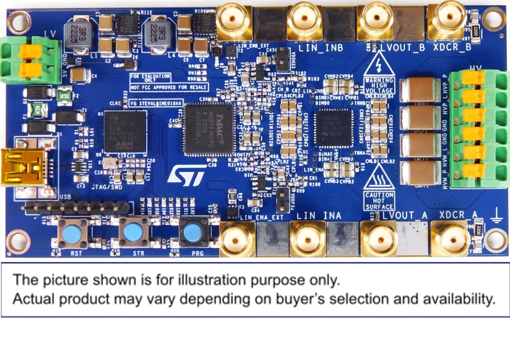 The STEVAL-IME018A is an evaluation kit that demonstrates STHV200 performance, a fully integrated high-voltage driver including both a dual-channel linear and dual-channel pulser driver.