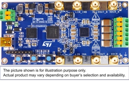 For demonstration purposes, dedicated connectors have been added to which the probes of an oscilloscope or an analog front-end can be connected to display or process the high-voltage signals generated by the STHV200. There are also programming, start and reset buttons, and a GUI is provided to facilitate demo-kit programming operations.