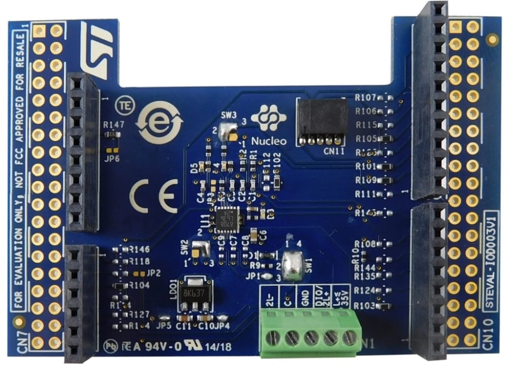 The IO-Link protocol can also be evaluated connecting the STEVAL-IOD003V1 to a NUCLEO-L452RE.
