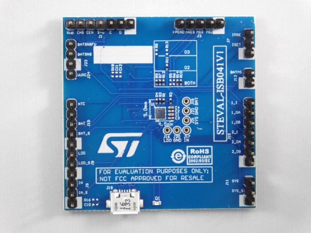 The STEVAL-ISB041V1 product evaluation board is based on STBC02 battery power management, integrating a linear charger for single-cell Li-Ion batteries with battery protection functions, an LDO regulator, two SPDT load switches and intelligent reset logic.