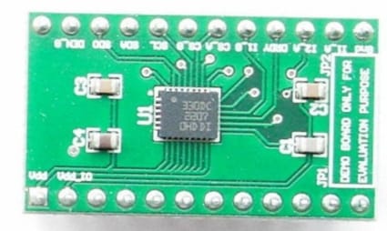 The STEVAL-MKI122V1 can be plugged into a standard DIL 24 socket. The adapter provides the complete LSM330DLC pinout and comes ready-to-use with the required decoupling capacitors on the VDD power supply line.