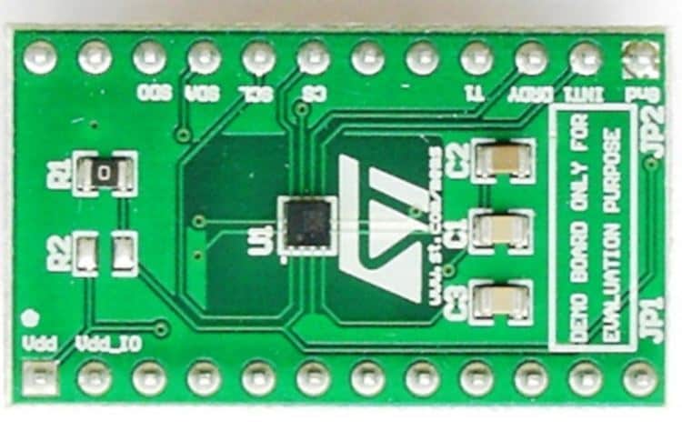 The STEVAL-MKI137V1 can be plugged into a standard DIL 24 socket. The adapter provides the complete LIS3MDL pinout and comes ready-to-use with the required decoupling capacitors on the VDD power supply line.