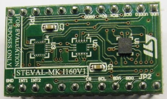 The STEVAL-MKI160V1 is an adapter board designed to facilitate the evaluation of MEMS inertial devices in the LSM6DS3 product family. The board offers an effective solution for fast system prototyping and device evaluation directly within the user's own application. The STEVAL-MKI160V1 can be plugged into a standard DIL24 socket. The adapter provides the complete LSM6DS3 pinout and comes ready to use with the required decoupling capacitors on the VDD power supply line.