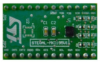 The STEVAL-MKI195V1 is an adapter board designed to facilitate the evaluation of the LSM6DSRX 6-axis IMU (inertial measurement unit). The board offers an effective solution for fast system prototyping and device evaluation directly within the user’s own application.