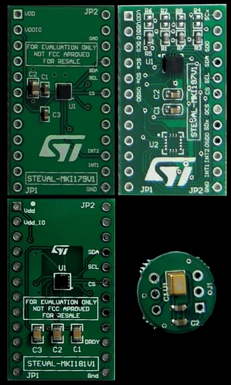 The STEVAL-MKIT01V2 is a MEMS sensor sample kit containing four sensor adapter boards that can be evaluated in standalone mode by simply connecting an I²C cable and an analog cable for the microphone.