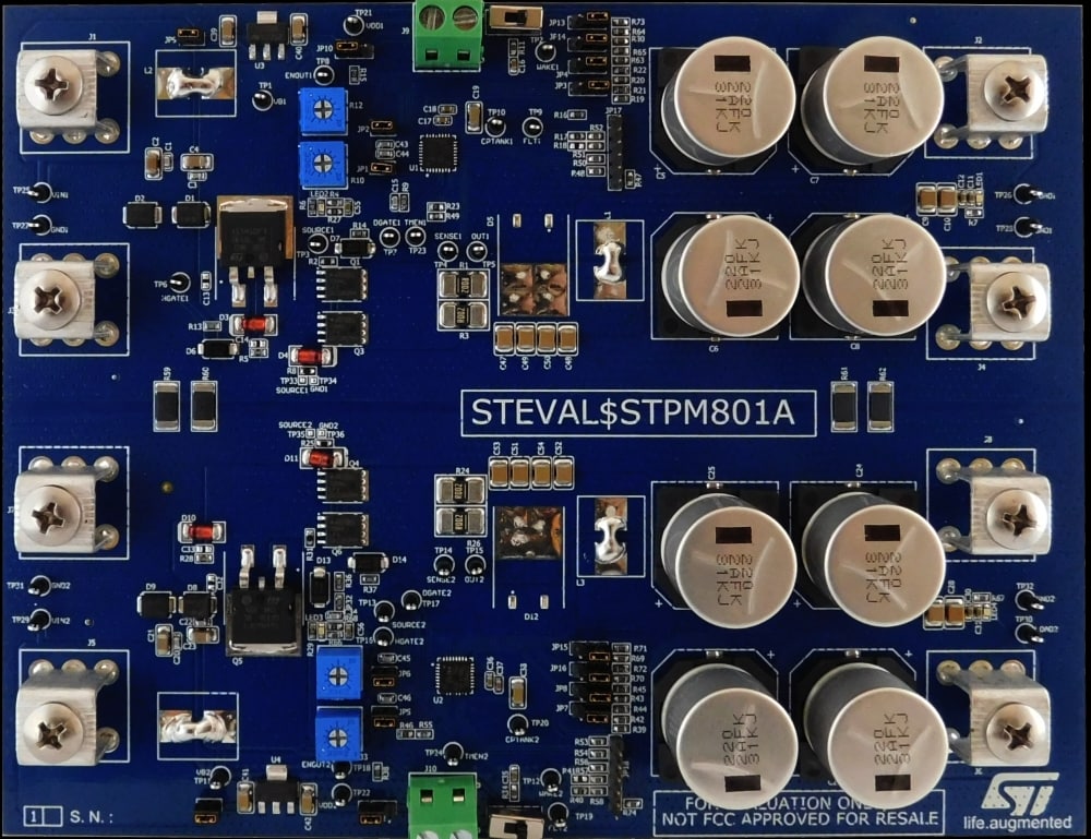 - Availability of two sections on the board (2x STPM801), with the possibility to operate in dual supply line approach