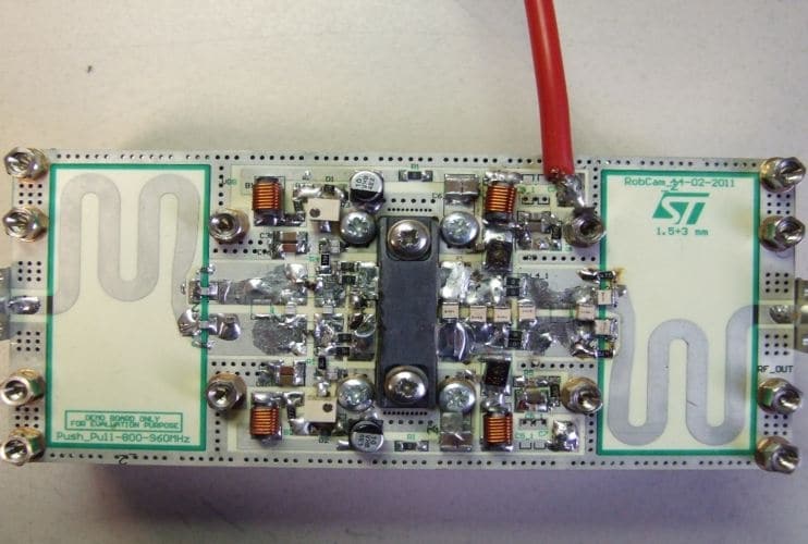 The STEVAL-TDR030V1 demonstration board is designed for 2-way radio BTS and general wireless services at 28 V to 32 V. It uses two LET9060S LDMOS transistors.