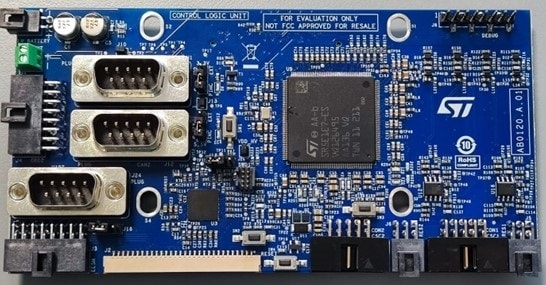 The board hosts a new concept of control logic unit based on ASIL D SR5E1E7 MCU with 2x 32-bits Arm Cortex®-M7 in eTQFP176 package and ASIL-D SPSB100 power management IC with integrated watchdog for safety (AEC-Q100 qualified ISO 26262).