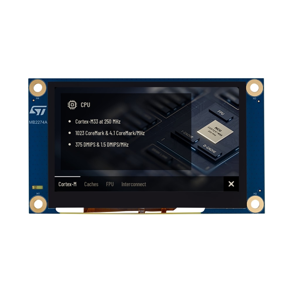 - STM32H5F5LJH7Q microcontroller based on the Arm® Cortex®‑M33 core with Arm® TrustZone®, featuring 4 Mbytes of flash memory and 1.5 Mbytes of SRAM, in a TFBGA225 package