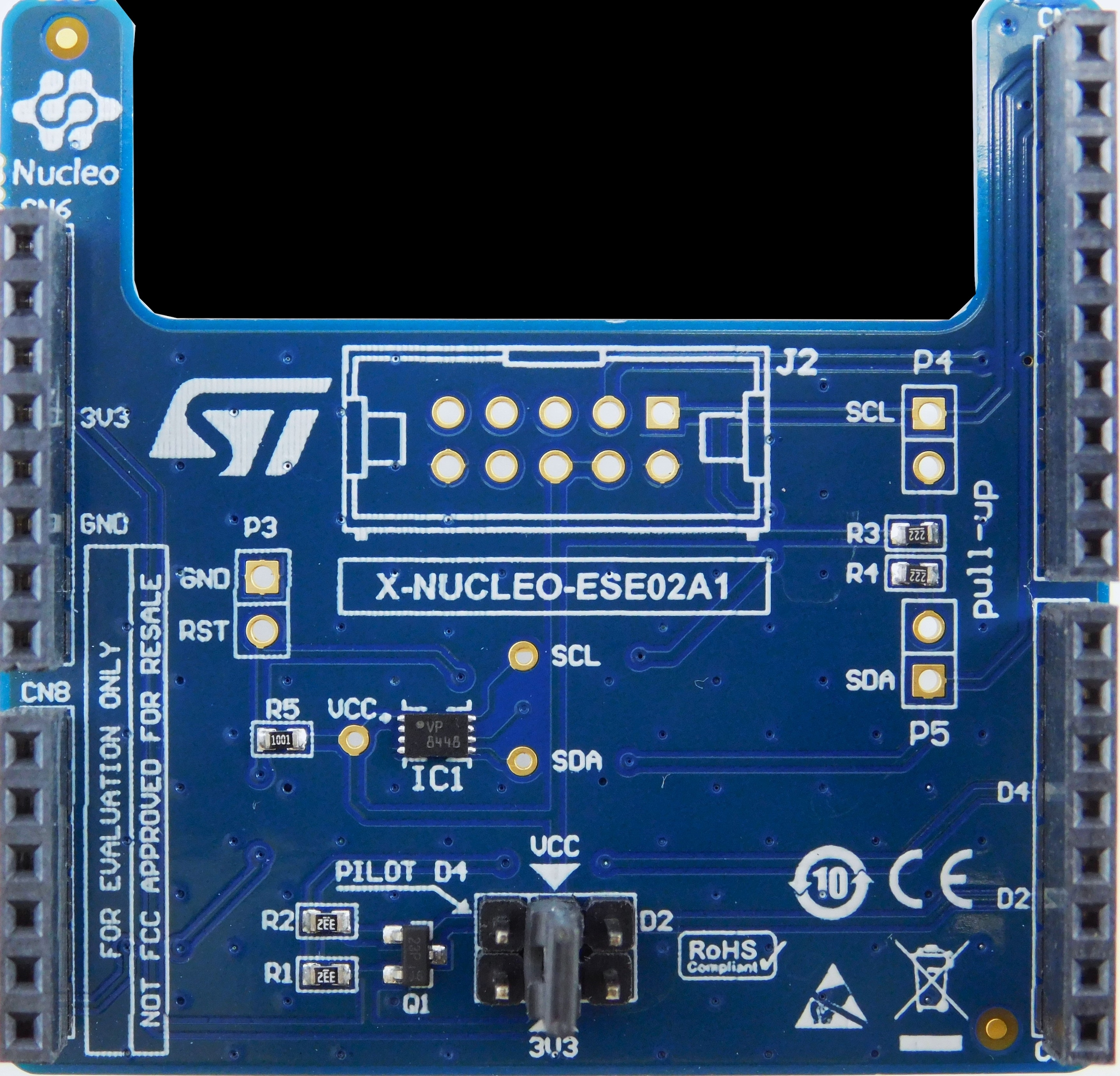 The X-NUCLEO-ESE02A1 expansion board is based on the STSAFE-L010 secure element. It can be used with any STM32 Nucleo development board.