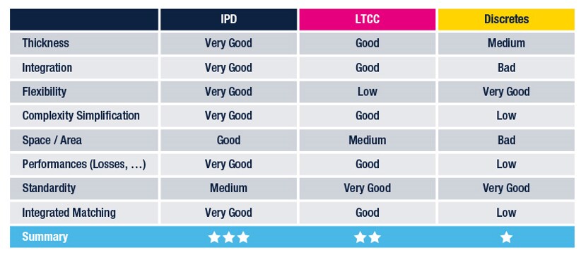 - Reduces temperature sensitivity, process variation and thickness (compared to discretes/LTCC).