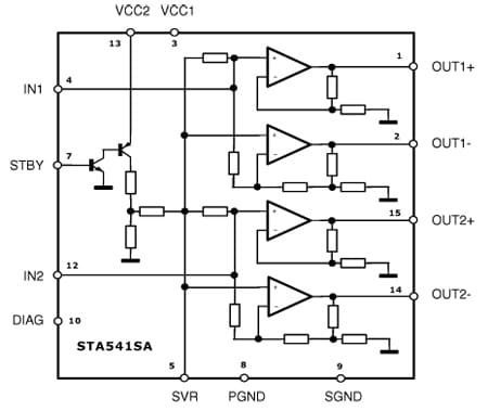 The STA541SA is a dual bridge, class-AB audio amplifier designed for high quality sound applications.